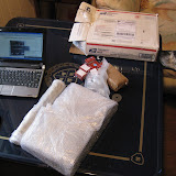 The plot below and to the right shows the first triangle. The small dots are vertices of all 100 triangles. The plot shows the original coordinates (rightmost of the triangles). Next, it is moved so the rightmost vertex is at (0,0). Then it is rotated counterclockwise so that the first cut is horizontal (from 0,0 to about -80,0). Finally, allowance is made for the cutting tool's radius. The green lines mark where the tool's center will travel when cutting the three edges.